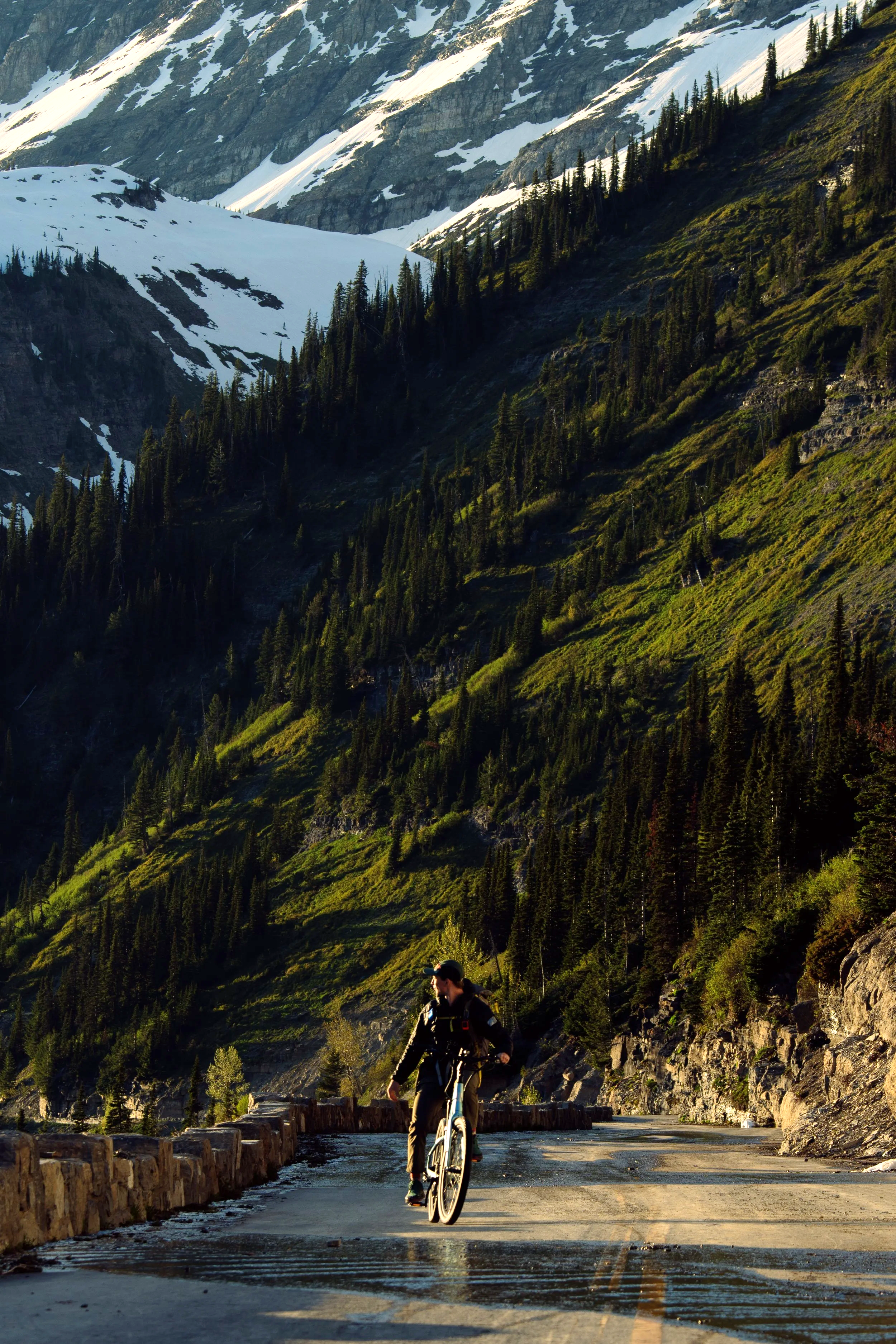 Spring biking on the Sun Road before it opens to cars is a world-class Montana experience. We offer premier guided e-bike tours on the Going-to-the-Sun Road. As a locally-owned, owner-operated outfitter, our expert guides handle everything from wildlife safety to trailside maintenance. We provide the e-bikes, helmets, and local knowledge, allowing you to comfortably pedal up the alpine grades and enjoy the breathtaking views.
