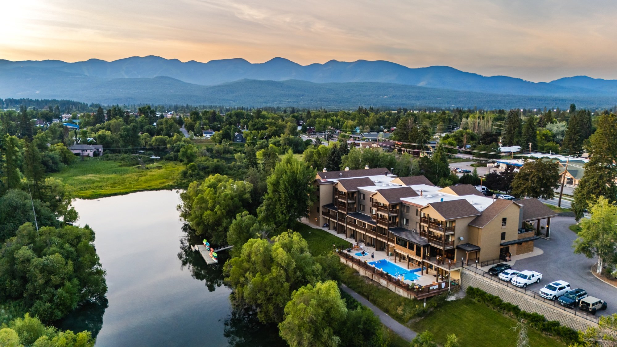 Nestled along the scenic banks of the Whitefish River, the Whitefish Riverfront Hotel (formerly The Pine Lodge) offers a perfect blend of comfort, convenience, and adventure-ready amenities. Located just steps from the vibrant shops and restaurants of downtown Whitefish and a scenic 30-minute drive to the West Entrance of Glacier National Park, this recently renovated hotel serves as an ideal basecamp for hikers and bikers looking to explore the Crown of the Continent.